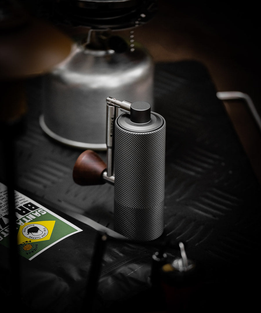 Timemore Nano Manual Grinder features an easy grip body and retractable handle. The magnetic walnut wooden fitting is totally detachable, making it even more compact.